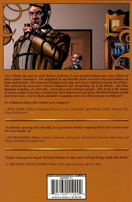 Leah Moore, John Reppion (W) Aaron Campbell (A) Continuing their new exploration of literary icons, Dynamite Entertainment presents the ultimate mystery as they unveil Sherlock Holmes! Written by Leah Moore and John Reppion with reverence and a modern edge, artist Aaron Douglas completes the Victorian mood under the striking and iconic John Cassaday covers. Issue #1 begins the 'Trial of Sherlock Holmes' which presents the great detective with an all-too personal quandary and explores the nature of the man and his world with a mix of refined ambiance, carefully crafted mystery and chilling suspense!