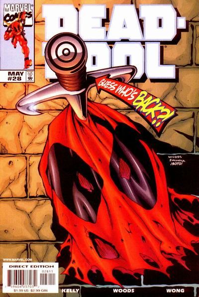 Cover pencils by Pete Woods, inks by Rebecca Shelander. I Can't Place the Name, But the Face Rings a Southern Belle..., script by Joe Kelly, pencils by Pete Woods, inks by Walden Wong; DP tracks down the woman who has been invading his sanity, his long dead wife Mercedes; Unfortunately, Bullseye hot is on her trail and trying to kill her all over again. 36 pgs. $1.99. Cover price $1.99.