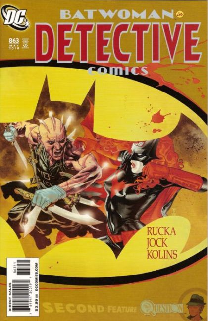 Written by GREG RUCKA Art by JOCK Co-feature art by CULLY HAMNER Cover by JH WILLIAMS III When Batman and Batwoman each face off against a knife-wielding killer, they soon find themselves working different sides of the same case. But will they arrive in time to rescue the missing girl and stop the killer from claiming another victim? Things do not end well in 'Cutter' Part 3. And in The Question, the mastermind behind the human trafficking ring and the gunrunning scheme is finally revealed, and The Question and the Huntress find themselves in the fight of their lives.