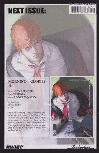 Zoe has everything-looks, popularity, and a perfect GPA. But if you think you know all there is to know about her, think again. The secret she keeps sheds new light on the mysteries of Morning Glory Academy! 'Just as strong as Spencer's writing is Joe Eisma's artwork. Though the style of his art differs considerably from the striking work of the cover artist, Rodin Esquejo, Eisma's efforts in no way suffer from comparison. He utilizes strong, clean lines that provide plenty of detail.' -Ross Haralson, SilverBullet.com TAG: THE HIT BOOK OF 2010 BEGINS A NEW STORY ARC! THE PERFECT JUMP-ON POINT AT ANY ALL-NEW LOWER PRICE!