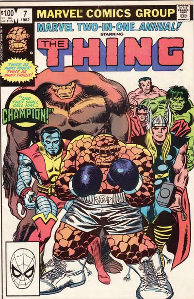 The Champion has sent the Promoter to search Earth for its greatest champions, and rounds up the Thing, Thor, Hulk, Wonder Man, Colossus, Doc Samson, Sub-Mariner and Sasquatch. They are to face the Champion in the boxing ring, for the highest possible stakes. Can any of them defeat an Elder of the Universe?