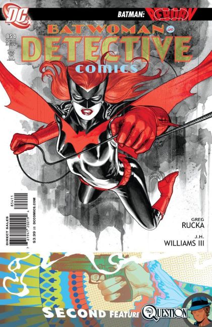 Written by GREG RUCKA Art and cover by J.H. WILLIAMS III Co-feature art by CULLY HAMNER A new era began with the first Batwoman adventure in DETECTIVE COMICS, now reprinted for just $1.00! Kate Kane is a soldier fighting her own private war - one that began years ago and haunts her every waking moment, in a story collected in the upcoming BATWOMAN: ELEGY HC (FEB100181). This new printing also includes The Question co-feature!