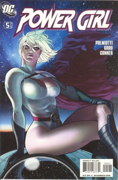 Written by Jimmy Palmiotti & Justin Gray Art and cover by Amanda Conner Variant cover by Guillem March 'Space Girls Gone Wild!' part 2 of 3! As the trio of sexy alien marauders continue their rampage across Earth, Power Girl tries to figure out how to stop 'em! But with aliens this gorgeous, readers won't ever want them to leave! Retailers please note: This issue will ship with two covers. For every 10 copies of the Standard Edition (with a cover by Amanda Conner), retailers may order one copy of the Variant Edition (with a cover by Guillem March). Please see the Previews Order Form for more information. On sale September 23 ? 32 pg, FC, $2.99 US