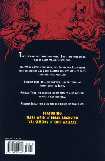 They thought the threat was over. But it had only begun. And it makes strange bedfellows. Trapped in another dimension, the Golden Age Flash teams with the Modern Age Green Lantern and vice versa to solve some very dire problems: Problem One: An alien invasion is on the verge of taking over the Earth. Problem Two: The younger heroes seem to have switched powers if not identities. Problem Three: One hero may be running his final race.