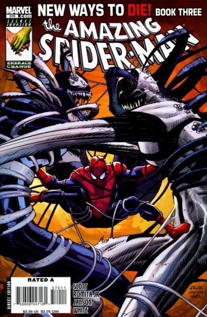 The Thunderbolts are in town, and Venom has attacked the F.E.A.S.T. shelter where Peter's Aunt May spends her time. But a strange reaction in Eddie Brock, triggered by the close proximity of the symbiote he once bore, has transformed him into Anti-Venom. The two begin to fight even before Spider-Man arrives on the scene. There's no love lost between any of the three, leading to a tense standoff. And which glider-riding villain is harassing mayoral candidate Bill Hollister?