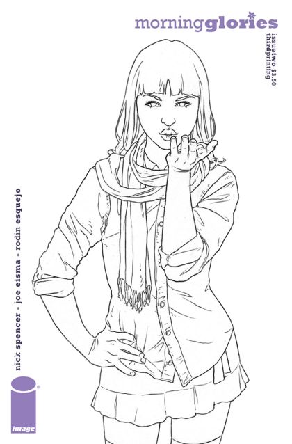 story NICK SPENCER art JOE EISMA cover RODIN ESQUEJO SEPTMBER 15 32 PAGES / FC $3.50 It's the Glories' first day of school, and they've already landed themselves in detention! Now anywhere else that might just mean the start of a bad year, but they're about to find out when you're enrolled at Morning Glory Academy, corporal punishment takes on a whole new- and deadly - meaning! TAG: The most hotly anticipated new series of the summer continues! It's RUNAWAYS meets LOST from the writer of FORGETLESS and SHUDDERTOWN!