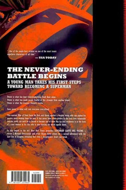 The highly anticipated sequel to the #1 New York Times best-selling graphic novel SUPERMAN: EARTH ONE by acclaimed writer J. Michael Straczynski and superstar artist Shane Davis is here! Young Clark Kent continues his journey toward becoming the World's Greatest Super Hero but finds dealing with humanity to be a bigger challenge than he ever imagined! From a ruthless dictator to a new love interest who's NOT Lois Lane, things are never easy for this emerging Man of Steel. And the worst is yet to come, in the form of a man-monster with an insatiable appetite, the Parasite! The only thing that might appease his hunger is The Last Son of Krypton! But that will also mean he will have Superman's powers without his conscience, and Kal-El learns to live without powers beyond those of mere mortals.