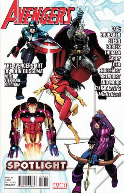 Written by JOHN RHETT THOMAS Cover by JOHN ROMITA JR. Marvel begins a new Heroic Age of Avengers action in May, with the first issues of Brian Michael Bendis' AVENGERS and Ed Brubaker's SECRET AVENGERS leading the way! To celebrate this new Heroic Age for Earth's Mightiest Heroes, we want all SPOTLIGHT faithful to assemble for a double-sized extravaganza jam-packed with inside information, interviews, preview art and some very special surprises. This month's SPOTLIGHT is all things Avengers: Who survived SIEGE? Which heroes passed the Initiative? What's up with Luke Cage and his renegade Avengers? What's life like in a post-Dark Reign world? And where doe Steve Rogers fit into all of this? If you are a fan of the Avengers -- old school or new -- this is a must-buy piece of Marvel memorabilia!