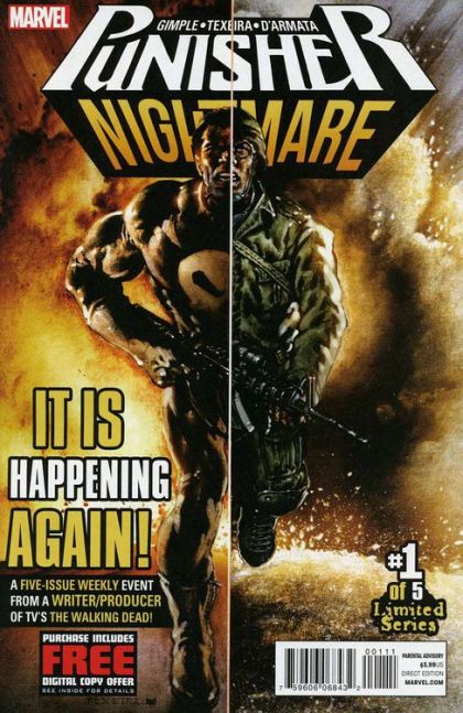 A FIVE-PART, FIVE WEEK PUNISHER EVENT! - A Special Forces soldier is injured and his family killed in the midst of a mob execution in Central Park, but this isn't Frank Castle. This time it's a young soldier named JAKE NIMAN, but the familiar story puts Frank on the path of punishment! - As Jake Niman heals from his wounds, why is he growing strangely stronger? - And who is the mysterious Johnny Nightmare? - Bullets fly, anarchy reigns, allies become enemies, the Punisher becomes the punished, and no one is safe!!!