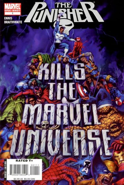 Written by GARTH ENNIS Pencis & Cover by DOUGIE BRAITHWAITE Reprinting Garth Ennis' first shot at writing the Punisher! What happens when Frank Castle's wife and kids are caught in the crossfire of a super-hero battle instead of a gangland slaying? Find out in this alternate-reality tale from 1995, as Castle vows vengeance on a world full of Marvel heroes as the Punisher! 48 PGS./Rated T+