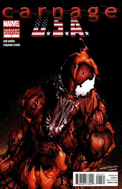 WELCOME TO CARNAGE U.S.A. - THE ULTIMATE RED STATE! Carnage's maniacal reign of terror continues, courtesy of the critically acclaimed creative team of Zeb Wells and Clayton Crain! Spider-Man and the Avengers must go on a brutal hunt to capture Cletus Kasaday before a small town in the American heartland falls under his mass-murdering spell! Buckle in and prepare for a violence packed adventure! Carnage U.S.A. wants YOU this December! 32 PGS./Rated A