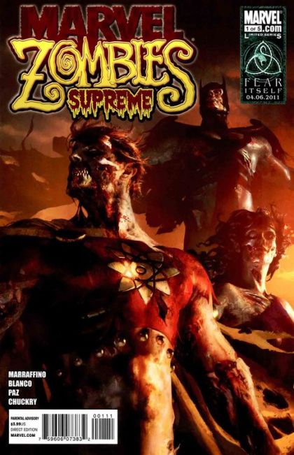 Written by Frank MarrafFino Pencils by Fernando Blanco Cover by Michael Komarck Issue One Variant Cover by Arthur Suydam A HUNGER SUPREME! They were the Squadron Supreme, heroes exiled from another dimension to our own?but the twisted science of the Project Pegasus facility infected these defenders with a virulent zombie strain. Now it's up to Jill Harper's desperate special ops team to keep the plague contained within the facility-whatever the cost. But Harper discovers that the Squadron wasn't the only unconscionable experiment being kept off the Pegasus records?and her shocking find may be the key to saving the human race. Join Frank Marrafino (Haunted Tank) and Fernando Blanco (MARVEL ZOMBIES 5, THUNDERBOLTS) as the bodies and unpredictable resurrections climax in the most gore-soaked chapter of the Marvel Zombies saga yet! 32 PGS./Parental Advisory