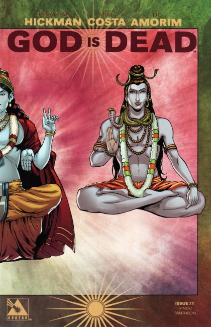 Like a thunderbolt from heaven, the epic launch issue of GOD IS DEAD is here! East of West and Fantastic Four author JONATHAN HICKMAN launches a fierce new series that stomps where others fear to tread. Mankind has argued over the existence of gods since the dawn of time. In modern eras it's been fashionable to mock religious believers with taunts of scientific testimony and fact. But when the gods of old begin to reappear on earth and claim the domain of man for their own, the world is thrown into a state of utter anarchy. Now Horus walks the streets of Egypt, Zeus has taken over the Sistine Chapel, and Odin is coordinating the dissection of the earth among the returned deities. Mankind held sway over the world for thousands of years and their hubris over that time has made them powerful but when faced with the divine, can mortal weapons put an end to the second coming of the gods? Available with a Regular cover by Jonathan Hickman, End of Days cover by super-star Jacen Burrows, a premium Iconic cover by Burrows that features a card stock cover and is limited to just 5000 copies, and a Pantheon Order Incentive cover by series artist Di Amorim.