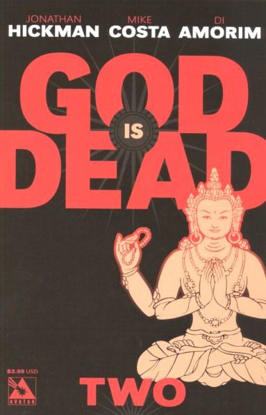 JONATHAN HICKMAN brings the wrath of the gods to comics with his new series, God is Dead! Modern man turns all his technology and destruction to bear against the deities of old. But what good are guns, tanks, and even nuclear missiles against the power of the divine? In their hubris, humans have ruled for too long. Now the gods of legend rule and to disobey them is death. But something is brewing just below the surface of the newly returned powers? A war of the gods themselves! Available with a Regular cover by Jonathan Hickman, End of Days cover and a premium Iconic card stock cover that is limited to just 5000 copies by Jacen Burrows, and a Pantheon Order Incentive cover by series artist Di Amorim.