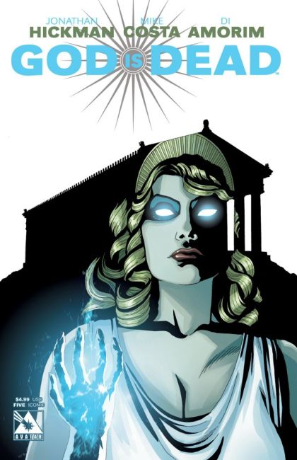 The world is only hours away from Armageddon as the pantheons of Asgard and Olympus collide. With the first attempt at creating a god weapon resulting in the birth of Mammon, the enclave of scientists strikes a desperate stake as they hope they can create a being able to stand against the deities waging war across the globe. But tampering with the very stuff of gods is a dangerous game and the end result is nothing short of staggering? Join JONATHAN HICKMAN for the end of the world as God Is Dead rolls toward an unbelievable climax! Available with a Regular cover by Jonathan Hickman, End of Days cover, a premium Iconic card stock cover that is limited to just 5000 copies by Jacen Burrows, and a Pantheon Order Incentive cover by series artist Di Amorim.