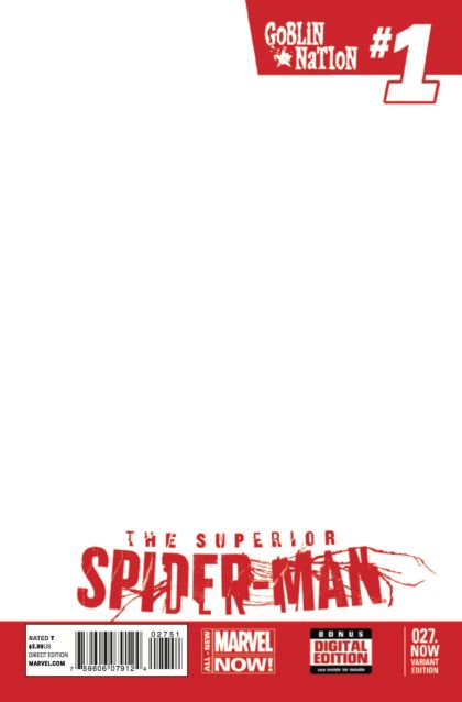 'Goblin Nation' #1 (of 5) - The so-called Superior Spider-Man has failed. Under his watch, the Green Goblin took control of New York's underworld. This is all Otto Octavius' fault. Now it's his responsibility to take the Goblin down. - Win or lose, this shall be Otto's greatest battle. Whatever you do, don't miss the first chapter of the biggest event in the entire Superior Spider-Man Saga! - The End starts here. Superior Spider-Man versus? THE GOBLIN NATION!