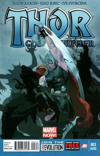 Following the bloody wake of murdered gods across the depths of space, Thor tracks the God Butcher into the present! - Discovering a forgotten cave on earth that echoes with the cries of tortured gods...the Thunder God is shocked to find himself among them!