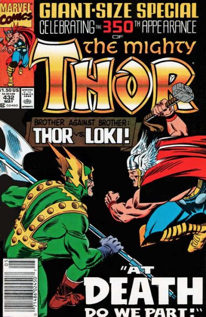 Loki holds Erik Masterson's son Kevin hostage, and demands that Thor discard Mjolnir to save the boy's life. This begins a battle of the gods between the two brothers as Thor does everything he can to shield Kevin as Loki beats on Thor. The police manage to work their way up to the top floor of the building where the two Asgardians fight, and rescue Kevin, allowing Thor to finally take the offensive. With Loki at his mercy, Thor has a chance to end his life... but he relents. At least until Loki's spiteful act of killing a mortal close to Thor before surrendering to face Asgard's justice. Enraged, Thor declares that Asgardian justice is not strong enough for Loki's crimes, and takes his life. For this crime, Odin awakes from his rest to declare that Thor must face justice.Thor vanishes, and in his place is only Erik Masterson. But when he bangs his walking stick against the ground, he posesses the power of Thor... while still retaining his own personality.