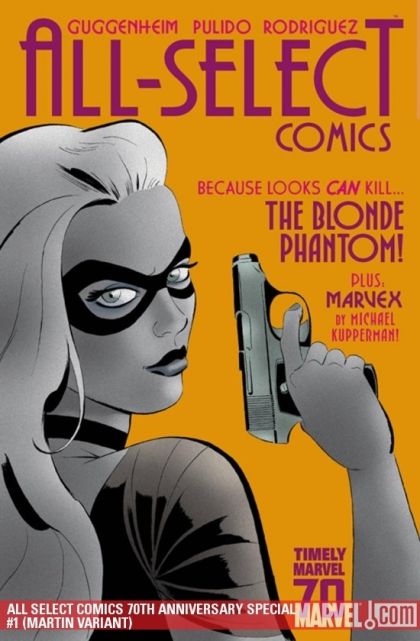 Written by MARC GUGGENHEIM & MICHAEL KUPPERMAN Art by JAVIER PULIDO & MICHAEL KUPPERMAN Cover by RUSS HEATH Variant Cover by MARCOS MARTIN Meet Blonde Phantom - she's gorgeous, quick-witted, and hard-boiled. There was never a case that wasn't open-and-shut for this gun-toting, two-fisted knockout of a P.I. But has she still got what it takes to bust a mystery wide open in the modern Marvel Universe? Marc Guggenheim (AMAZING SPIDER-MAN) and Javier Pulido (CAPTAIN AMERICA 65TH ANNIVERSARY SPECIAL) turn the classic Blonde Phantom into Marvel's newest hero! AND MORE! Writer/artist Michael Kupperman (Tales Designed to Thrizzle) takes on Marvex, the Super-Robot, in a hilarious bonus special feature!! 48 PGS./New and Reprint/Rated A ?$3.99