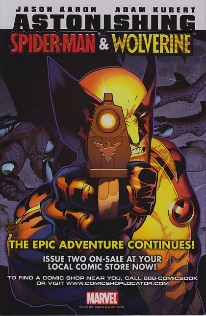 Written by JASON AARON Pencils & Cover by ADAM KUBERT Foilogram Variant Cover by ADAM KUBERT THE HEROIC AGE IS HERE! Spider-Man and Wolverine! Everyone's favorite wise-cracking web-spinner and ferocious furball come together in their first major series ever! The super-star creative team of Jason Aaron (WOLVERINE: WEAPON X, PUNISHERMAX) and Adam Kubert (ULT. FANTASTIC FOUR, X-MEN) send Spidey and Wolvie to the edges of the Marvel Universe as they face such awful beings as The Czar, Big Murder and Doom the Living Planet! But who is the major Marvel villain pulling the strings? And can Spidey & Wolvie refrain from killing one another long enough to find out?