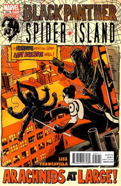 Written by DAVID LISS Pencils & Cover by FRANCESCO FRANCAVILLA SPIDER-ISLAND TIE-IN! First it was American Panther, now it's?Six-Armed Panther? The arachnid infection griping Manhattan hits T'Challa, but that doesn't mean he'll stop trying to protect Hell's Kitchen! And when Overdrive breaks into the quarantine zone, your friendly neighborhood Spider-Panther swings into a deadly race across the streets of New York City. What has the Spidey villain stolen that's worth smashing through a hero-protected border, and why is the lethal Lady Bullseye trying to keep him from getting back out? 32 PGS./Rated T+