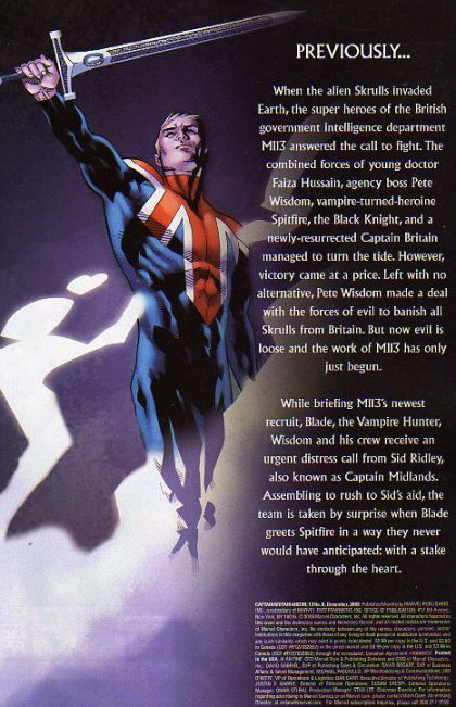 Demonic forces are at work in Birmingham. The mysterious entity known as Plokta is granting wishes to all, at the meager cost of their souls. And his power is growing, as more and more people rush to accept. Captain Britain is the first on the scene, and the temptation Plokta holds for him is immense. Blade greeted Lady Jacqueline Falsworth with a stake to the heart. As a super-powered vampire, she's his worst nightmare, and he's worried that the use of her vampiric gifts in battle against the skrulls might have reawakened her bloodlust. He may be right.
