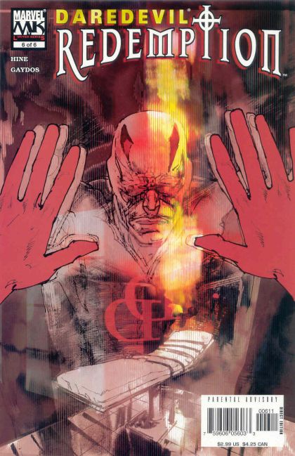 REDEMPTION #6 (of 6) Written by DAVID HINE Penciled by MICHAEL GAYDOS Cover by BILL SIENKIEWICZ. Twelve years have passed since Joel Flood stood trial for a murder that devastated an entire community. Now Matt Murdock must face the consequences of his role as Flood's defense attorney. Once again the shadow of death hangs over Redemption Valley, and it may already be too late to prevent another ritual slaying. 32 PGS./ Parental Advisory ...$2.99 Cover price $2.99.