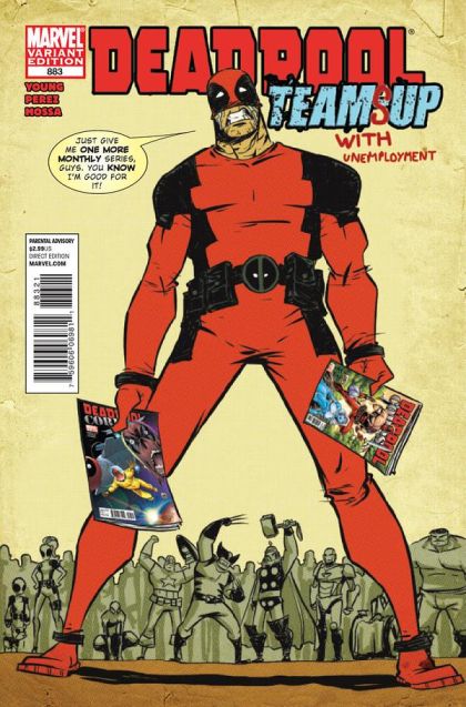 Written by Skottie Young Penciled by Ramon Perez Cover by Skottie Young Variant Cover by Skottie young The country is in the middle of an economic meltdown and everyone is feeling the burn, especially your favorite Merc with a Mouth. Deadpool realizes that there's no government bailout for super-powered mercenaries and when clients stop paying up, he's forced to do the unthinkable... Look for a job. Luckily, Galactus has a position open in the Herald department. Don't miss the face-melting final issue of the series that shook the comic book world to it's very core. 32 PGS./Parental Advisory