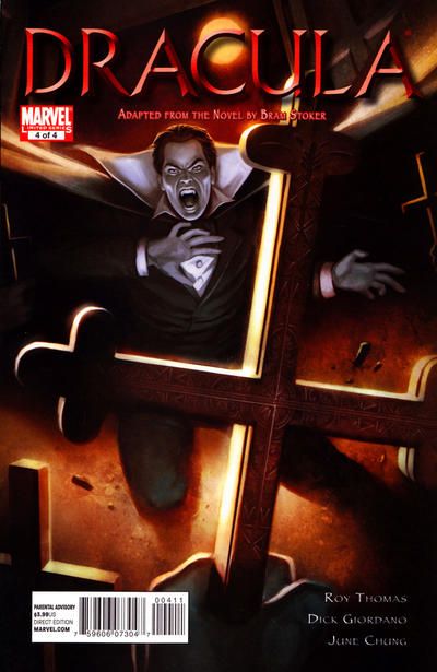 Written by ROY THOMAS Penciled by DICK GIORDANO Covers by JELENA KEVIC-DJURDEVIC Bram Stoker's legendary novel of gothic horror comes to life in this stunning adaptation by comics legends Roy Thomas and Dick Giordano-newly colored by June Chung. In the wake of Lucy's death strange happenings plague London, and Count Dracula seeks to visit his deadly curse upon Mina. Issue #4 brings the stunning conclusion as our heroes chase Dracula to the very gates of his castle hoping to end his fiendish existence. 48 PGS.(each)/Parental Advisory ?$3.99 (each)