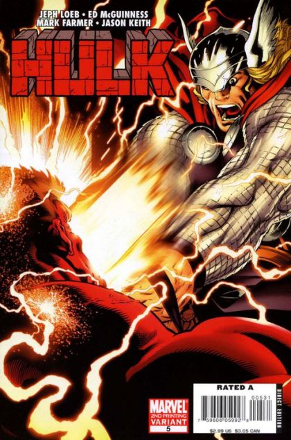 Rolling Thunder - Red Hulk faces off against Thor, and somehow manages to take the battle to the Moon, where he abandons the Thunder God. When he returns to Earth, the force of his impact nearly destroys San Fransisco. Stark is in the Baxter Building getting help analyzing the tape when the call comes in, so he shows up with reinforcements to help Hulk and A-Bomb take on the Red Hulk.