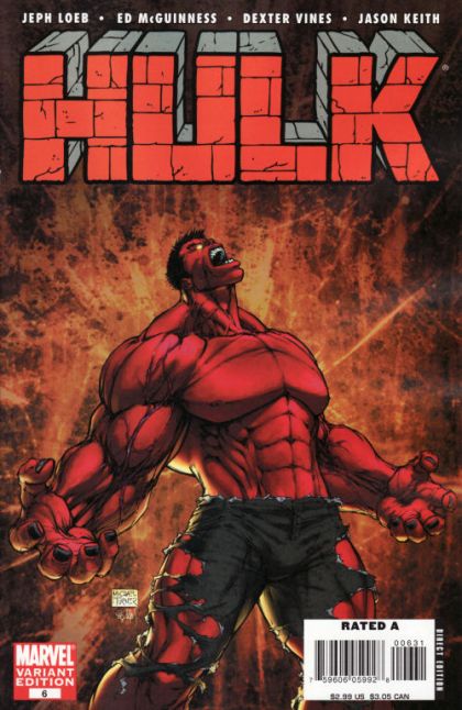 Blood Red - Iron Man's team holds San Fransisco together while A-Bomb and the Hulk pursue the Red Hulk. The Hulks go at it while A-Bomb and Thor stand on the sidelines, knowing this must be Hulk's battle. The behemoths duke it out, with green Hulk eventually winning. Rick knows who the Red Hulk is, but Doc Samson puts him down before he can reveal it. The Red Hulk awakens to see Samson and Ross staring down at him, berating him for squandering the power they have given him. From now on, the Red Hulk is on his own.