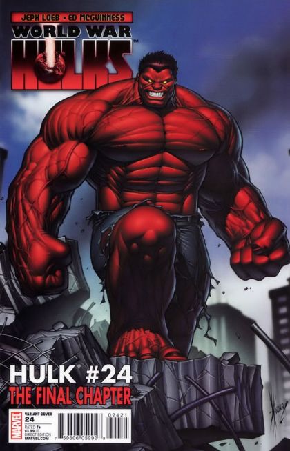 The Strongest There Is - The Red Hulk's national address is interrupted by the arrival of the original Hulk. The two finally have their final, knock-down, drag-out battle that decisively reveals who is the strongest there is.