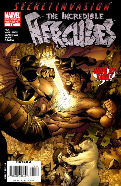 Athena addresses the Pantheon about the Skrull invasion, recruiting various human gods to attack Skrull gods under the leadership of Hercules. Among these gods is Atum, who recently laid waste to Olympus. Hercules is so upset about this and about being drafted that it takes Atum to point out that Athena's eyes recently became very green. This revelation comes after these gods are committed to a voyage away from Earth, however.