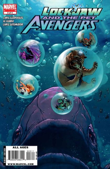 Written by CHRIS ELIOPOULOS Penciled by IG GUARA Cover by KARL KERSCHL Variant Cover by NICO HENRICHON If you thought battling Devil Dinosaur was bad, you were barking up the wrong tree! Join Lockjaw and the rest of the Pet Avengers on a voyage under the sea! Their search continues for the Infinity Gems, and it leads them right to the bottom of the ocean. Can they find the gem before drowning or getting eaten by Giganto? If you don't pick up the third part of this fan-favorite series, you're all wet! 32 PGS./All Ages ?$2.99