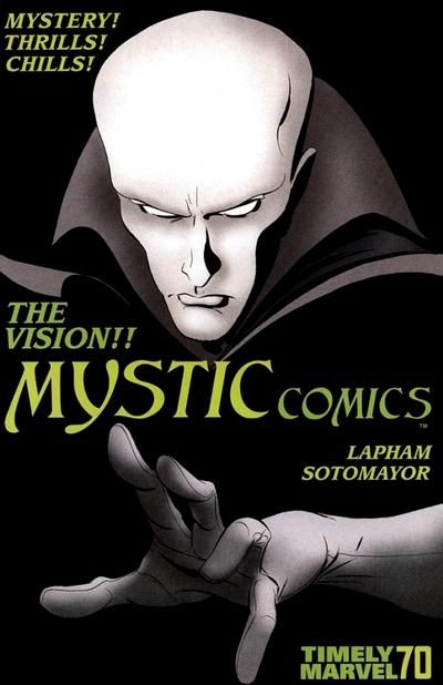 Written & Pencils by DAVID LAPHAM Cover by JUAN DOE Variant Cover by MARCOS MARTIN 'I am the destroyer of evil,' the haunting stranger intoned; 'I've crossed the great cold into your world!' So speaks the original Vision! From a dimension beyond, comes an otherworldly force of retribution. His steely touch turns killers to ice, shattering them. His staggering gaze drives the guilty mad with terror. His unstoppable power never fails to punish the wicked! It is said only those approaching death can see him in his true form as?the Vision! 48 PGS./One-Shot/New & Reprint/Rated A ?$3.99