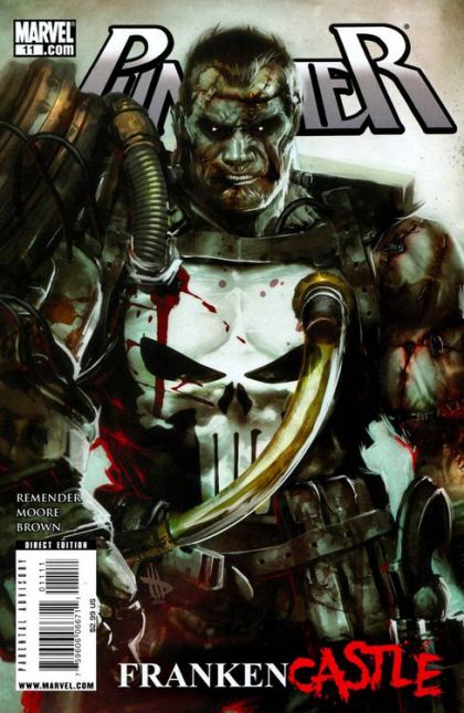 Written by RICK REMENDER Penciled by TONY MOORE Cover by DAVE WILKINS 'FRANKEN-CASTLE' PART 1-In the belly of New York, skulking and forgotten creatures of the night uncover the remains of a man in a familiar outfit. Frank Castle is dead. What exactly IS Frankencastle? Long time collaborators Rick Remender and Tony Moore (GHOST RIDER, Fear Agent, The Walking Dead) are reunited for what will be the greatest struggle in the afterlife of the Punisher. Battle not with monsters, lest ye become a monster? 32 PGS./Parental Advisory ?$2.99