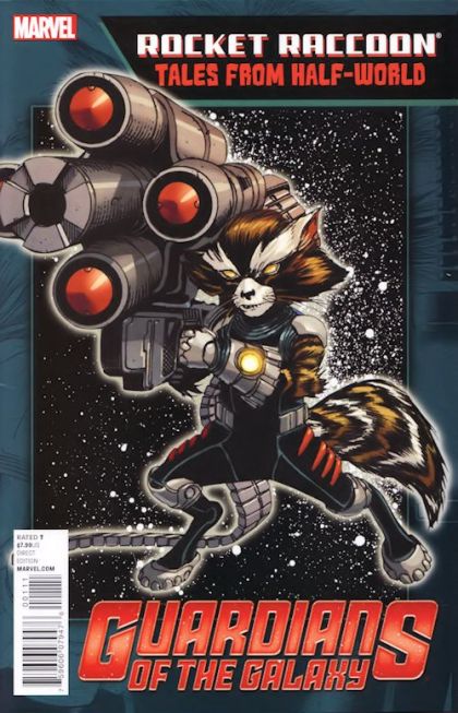 Relive the early adventures of the furry, feisty breakout star of GUARDIANS OF THE GALAXY! - Captain of the starship Rack 'n' Ruin, chief ranger of Halfworld, Rocket protects the Keystone Quadrant! - When the Toy War erupts, Rocket and his first mate Wal Russ must team with Bucky O'Hare! - Can they triumph over killer clowns, defeat Lord Dyvyne and Judson Jakes, and cure Halfworld's insane population, the Loonies? - Oh, and Rocket's a talking raccoon from outer space. We mentioned that, right? - Collecting ROCKET RACCOON #1-4.