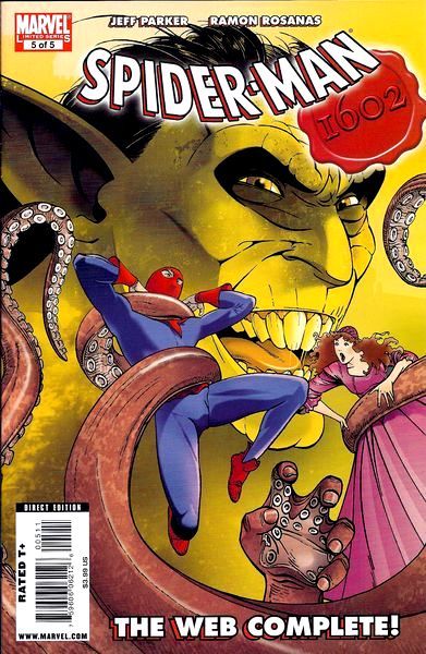 Written by JEFF PARKER Pencils & Cover by RAMON ROSANAS Octavius has come to accept his new body, and Peter is of no use to him anymore. Now The Spider finds himself and his new flame surrounded by monsters happy to shed their humanity. Will he lose his too -- and how will this affect the world of the future? Don't miss the riveting conclusion to this breakout series! Based on the 1602 series from Neil Gaiman. 32 PGS./Rated T+ ?$3.99
