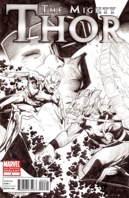 The World Eater has come for something buried deep within the heart of Fallen Asgard. As Odin leads an assault wave of gods against Galactus, a wounded Thor must contend with the Silver Surfer once more! All of which leaves Volstagg and Kid Loki in charge of the Shining City for an afternoon. What could possibly go wrong?