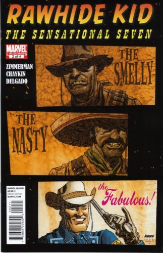 Written by RON ZIMMERMAN Penciled by HOWARD CHAYKIN Cover by DAVE JOHNSON 'TOMBSTONE BLUES,' PART 2 The sharpest-dressed sharpshooter in Wild West is back in the saddle again - and this time he's not riding alone! When Wyatt and Morgan Earp are taken hostage by Cristo Pike and his pack of pistoleros, the Rawhide Kid must put together a posse of the greatest western heroes in the Marvel Universe to rescue the Earp brothers and bring Pike to justice: Kid Colt, Doc Holliday, Annie Oakley, Billy the Kid, Red Wolf and The Two-Gun Kid! But before the Sensational Seven faces its High Noon showdown, it's got to get there in one piece - which ain't easy considering this posses' complicated history. 32 PGS./Parental Advisory ?$3.99