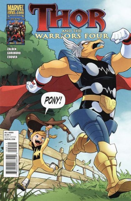 Written by ALEX ZALBEN Cover and Art by GURIHIRU Hercules backup by COLLEEN COOVER Who are the WARRIORS FOUR? What do they want with THE MIGHTY THOR, and his alien pal BETA RAY BILL? And how does a no-holds-barred stone throwing contest feature in all of this? The answers: 1) They're POWER PACK! 2)They want magical Golden Apples to save their grandmother's life, and 3)who doesn't like a good stone-throwing contest? The adventures of Power Pack continue as they reach Asgard, fight Dark Dwarves alongside Thor, and move one step closer to bringing about the end of everything they hold dear!