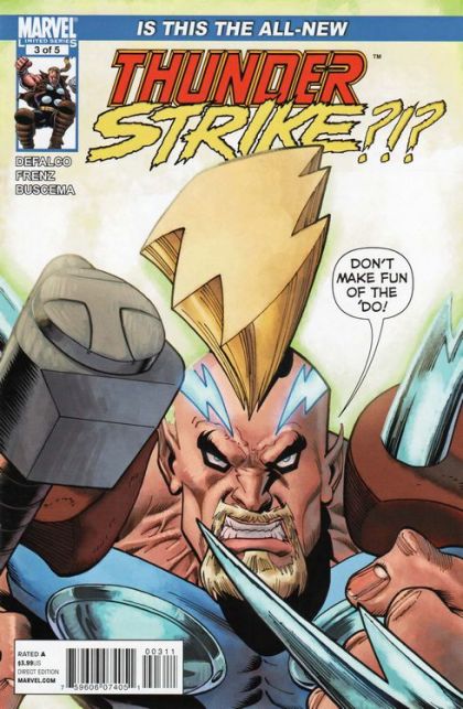 Written by TOM DEFALCO Pencils & Cover by RON FRENZ 'AND THE DEMIGOD DECLARES DEATH!' Nobody ever said being a super-hero would be easy, but the new Thunderstrike just can't catch a break. With Gruenhilda the Valkyrie criticizing his every move, the man who would be Thunderstrike begins a quest to recover his stolen mace. Along the way, he adopts a daring different persona, uncovers a plot to invade Olympus and soon finds himself in a fight for his life against a super-powered demigod who is on a mission of vengeance! 32 PGS./Rated A