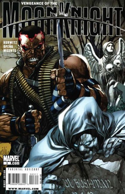 Written by GREGG HURWITZ Penciled by JEROME OPE?A Cover by LEINIL FRANCIS YU 'SHOCK AND AWE' PART 3-Years ago, Moon Knight lost his mind and killed a man, cut off his face and brayed at the moon. That man was his nemesis: Raoul Bushman. Now Bushman is back and looking for payback. He's laid a trap for Moon Knight, emptying Ravenscar Asylum and the lunatics are running wild down Broadway. For Moon Knight to defeat them - and Bushman - he'll need the full arsenal of his wits and weaponry. Because nothing can prepare him for the madness of Herman the German and the Great Wall. 32 PGS./Parental Advisory ?$2.99