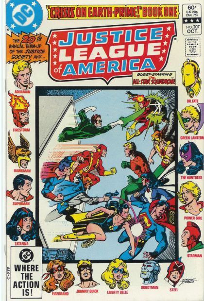 As the Justice League and Society prepare for their annual meeting, a problem occurs with the Earth-Two transmatter and instead of the Society appearing on the JLA satellite, Earth-Three's Crime Syndicate appear instead. With the element of surpise, the Syndicate defeat the League and use their shuttle craft to fly to Earth, planning revenge against Per Degaton. The heroes of Earth-Two, meanwhile, have been transported to the same interdimensional prison that the Crime Syndicate were banished to at the end of Justice League of America #30. While the prison effcetively held the Society's counterparts of the Syndicate, it was not designed for Dr Fate or Starman who use their powers to break free and search for a tear in reality that will lead them to Earth-Two. Finding a tear, they travel not to Earth-Two but to Earth-Prime which has been devastated by a nuclear war which, they discover, was caused by Per Degaton. Back on the JLA satellite, the heroes of the League recover and determine to find out what happened to the Justice Society. They use the transmatter to travel to Earth-Two but find the Justice Society's headquarters abandoned and the entire planet under the control of Per Degaton. Retreating back to the Society's headquarters, Superman aids the other heroes in travelling back through time to the days of World War II. There they find the Society's headquarters undamaged but instead of their friends, find the All Star Squadron.