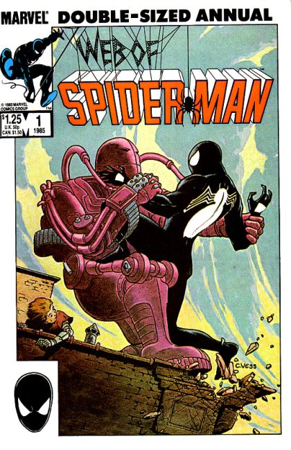 "Give Me A Hand, Future Max" Story by Ann Nocenti. Art by Tony Salmons. Painted cover by Charles Vess. Spider-Man attempts to stop a robbery at a jewelry store only to discover that the felon is a home-made robot. Later on, Peter Parker attends the Young Inventor's Science Fair and runs into Max, the robot builder. Unfortunately, a con man meets Max too, and convinces young Max to build the Future Max exo-skeleton for him. Now Spider-Man must stop Future Max's rampage across New York City! 48 pages Cover price $1.25.