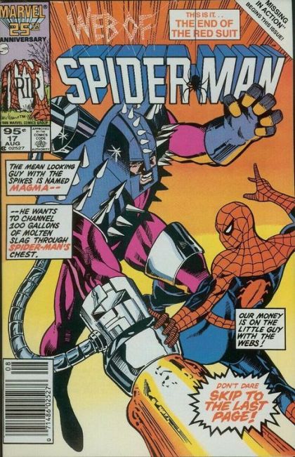 Spider-Man faces off against the murderous Magma, who has constructed an large complex underneath of Temple Corners. There he has Seth Hanks helping solve complex mathematical problems. Combined with his own gifts he may just be able to rewrite the world to suit his needs! But not of Spider-Man has anything to say about it. During a terrible fight, a misdirected blast from Magma's weapon causes a cascade failure, destroying the underground base, and... killing Spider-Man?