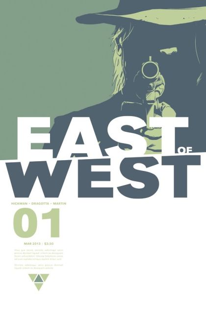 'OUT OF THE WASTELAND' The things that divide us are stronger than the things that unite us. A Sci-Fi Western set in a dystopian America where all hope for the future rests in the Four Horsemen of the Apocalypse?who just happen to be trying to kill the President of the United States. One of the most exciting new books of the year, this is EAST OF WEST, a brand new, ongoing, monthly comic from the award-winning team of Marvel's FF, JONATHAN HICKMAN and NICK DRAGOTTA.
