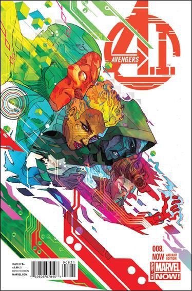 'THE EXTINCTION OF THE HUMAN RACE begins NOW!' The war between organic and artificial intelligence destroys the world of tomorrow, starting in AVENGERS A.I. 8.NOW! Dimitrios, the vengeance-seeking scion of Hank Pym and Ultron, downloads death and destruction across the planet in his quest to eradicate civilization. The Vision and his robot Avengers team up with the UNCANNY AVENGERS to rescue humankind from the precipice of extinction! Meanwhile, S.H.I.E.L.D. takes a hard line against the A.I. with their elite Robot Hunter Squad -- with an android member you'll have to see to believe! The consequences reach far, far into the future -- all the way to 12,000AD! Experience firsthand the Marvel Universe of the 130th century! Fight alongside the Avengers Empire on the edge of a black hole! Witness Dimitrios' final gambit against all of creation! Artificial intelligence never dies, it just gets SMARTER! Upgrade or die! Are you human or machine? The time to decide is NOW!