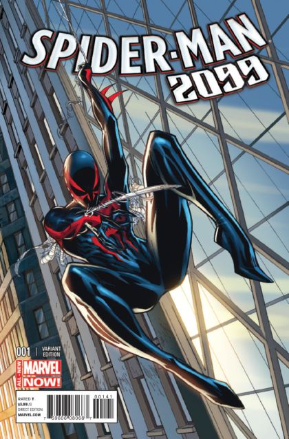 ALL-NEW SERIES FROM THE PAGES OF AMAZING SPIDER-MAN! The book you have been demanding for months finally hits the stands! Miguel O'Hara is Spider-Man in the year 2099 but he's currently stuck in the year 2014. He was stranded here by his father who is the head of an evil corporation called Alchemax in 2099. But in 2014, Alechmax has just been formed and Miguel has a chance to stop its corruption before it starts! You'd think being a man out of time would make you a man without enemies, but Spider-Man 2099 is about to discover that he's not the only one hoping for a better tomorrow, one that might be ensured by The Adjustor eliminating Miguel from the time stream altogether! Join comics legend (and Spider-Man 2099 creator) Peter David and breakthrough artist Will Sliney (Superior Spider-Man Team-up) for the most adventure you'll find in a book this side of the twenty second century!