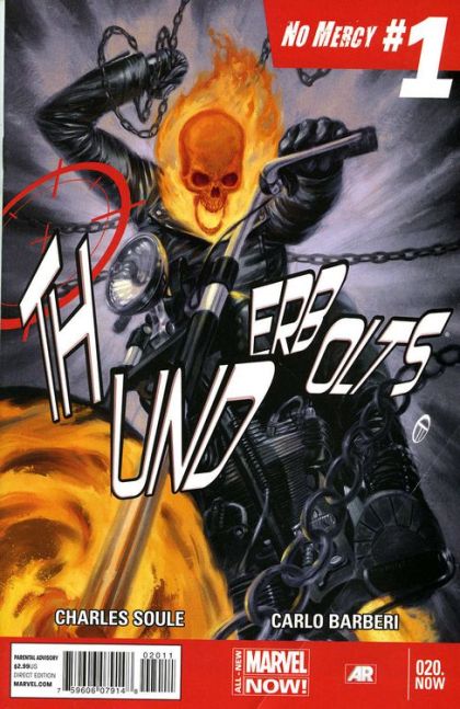 'NO MERCY' Part 1 GHOST RIDER JOINS THE THUNDERBOLTS! General Ross's Thunderbolts were brought together to clean up problems no one else could?but what about when the problem is ON the team? The seemingly all-powerful madwoman called Mercy has gone too far, slaughtering innocent people to fulfill her twisted mission of mercy. Who can the team turn to to help take down this powerhouse? How about Johnny Blaze, the original Ghost Rider? Can he save the team before it all goes to hell? Or will he lead them there?
